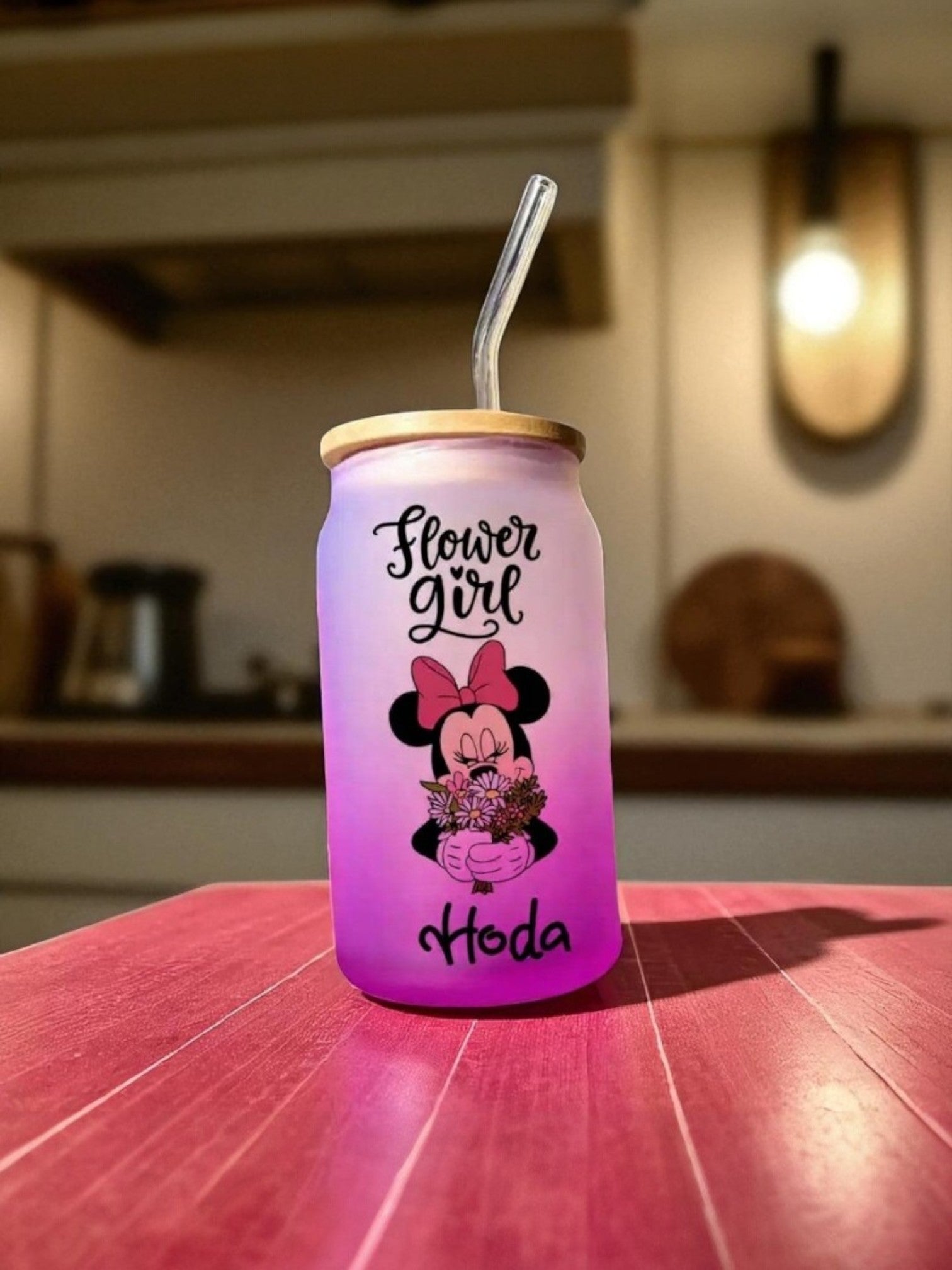 "Make every sip personal with our custom glass mug with straw. This one features the name Hoda, printed in a sleek, modern style on durable clear glass. Perfect for iced coffee, smoothies, or juices, it’s both practical and stylish — and it makes the perfect personalized gift.